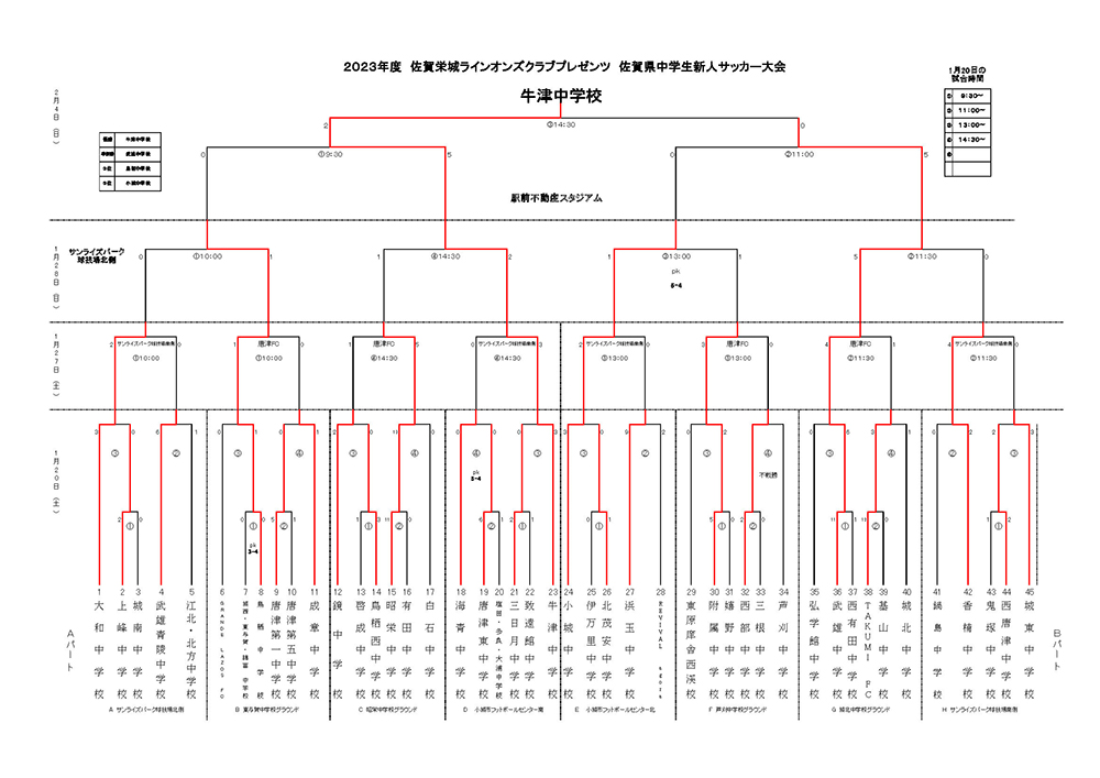 2024/02/05 牛津中学校が優勝!!2023年度 佐賀栄城ライオンズクラブプレゼンツ 佐賀県中学生新人サッカー大会 =2023年度 佐賀栄城ライオンズクラブプレゼンツ 佐賀県中学生新人サッカー大会= 【大会結果】 優 勝 牛津中学校 準優勝 武雄中学校