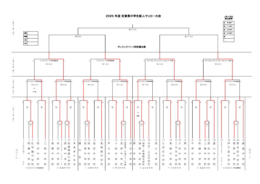 1月17日:SAGAサンライズパークボールフィールド(南北)、県内中学校グラウンド