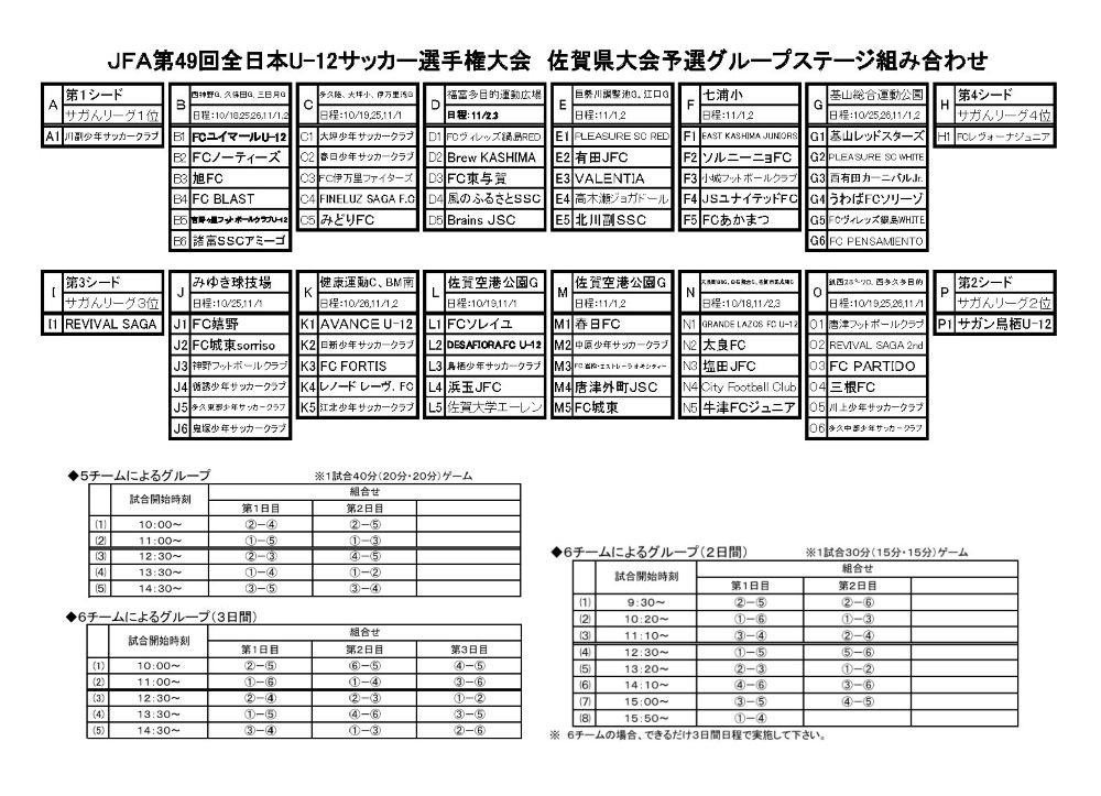 2025/10/24 JFA第49回全日本U-12サッカー選手権佐賀県大会 予選リーグ日程表