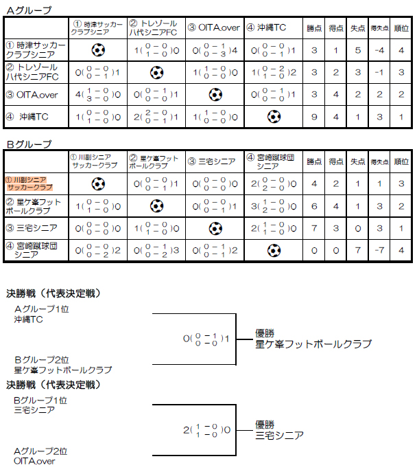 2025/08/19 KYFA第13回九州O-40サッカー大会 試合結果 KYFA第13回九州O-40サッカー大会試合結果 〔佐賀県代表〕川副シニアサッカークラブ 2025年7月12,13日、大分県中津市 ディーアクトスポーツパーク永添 【結果】1勝1分け1敗でBグループ3位