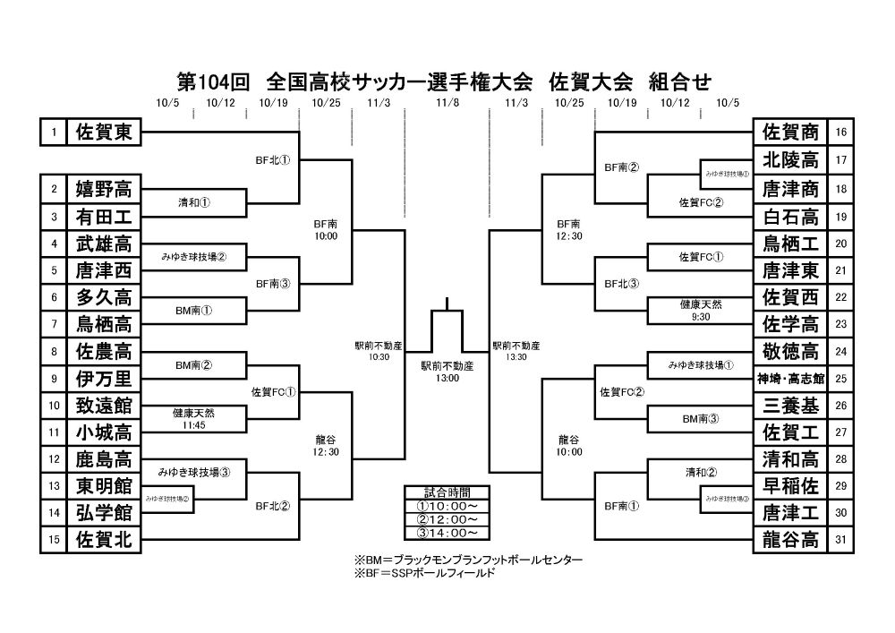 【第2種】第104回全国高校サッカー選手権大会 佐賀大会 組合せ