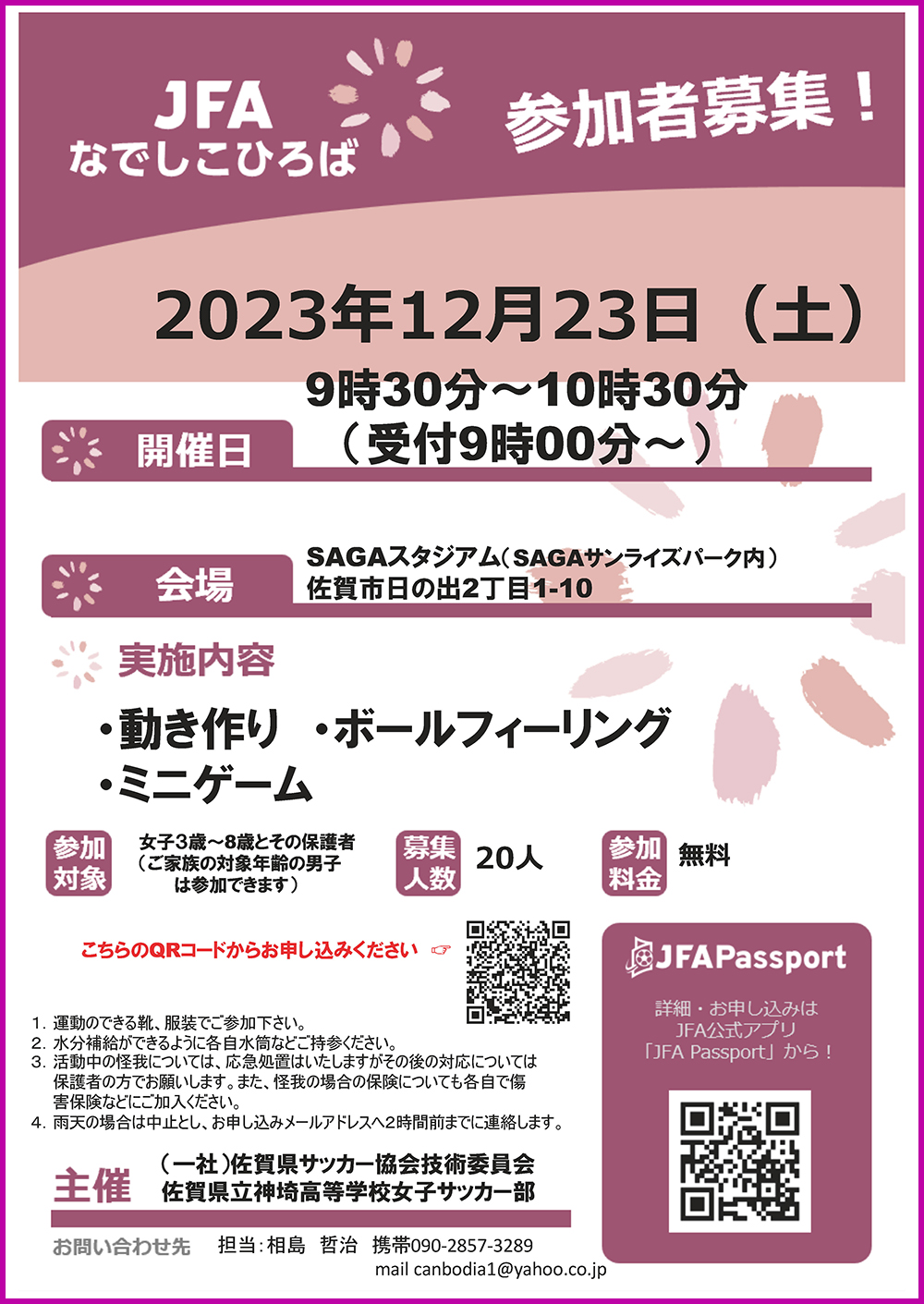 「 JFAなでしこひろば(2023/12/23開催)」参加者募集のお知らせ