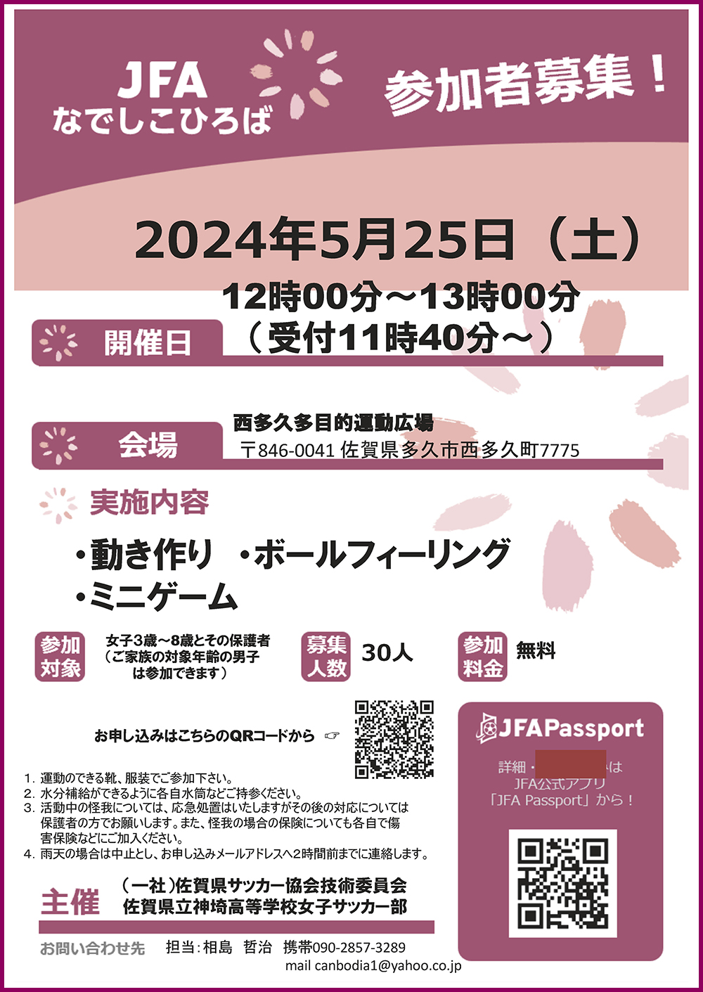 2024/04/19 「 JFAなでしこひろば(2024/05/25開催)」参加者募集のお知らせ