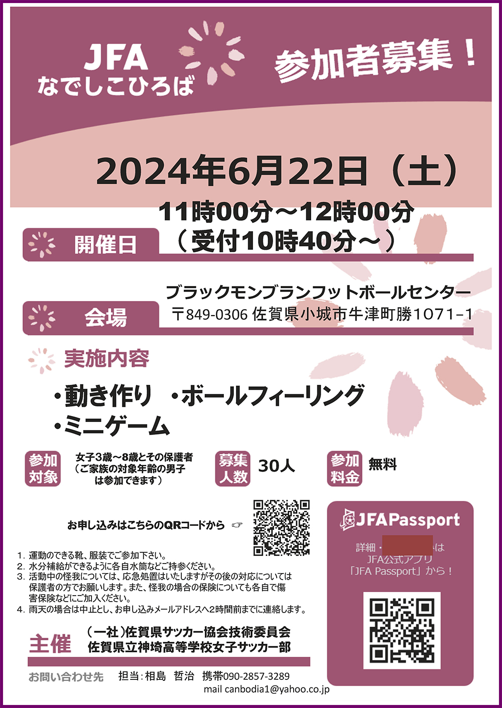 2024/06/05 「 JFAなでしこひろば(6/22・6/29開催)」参加者募集のお知らせ >>実施概要(6/22開催) ※ダウンロード >>実施概要(6/29開催 ※会場変更あり) ※ダウンロード