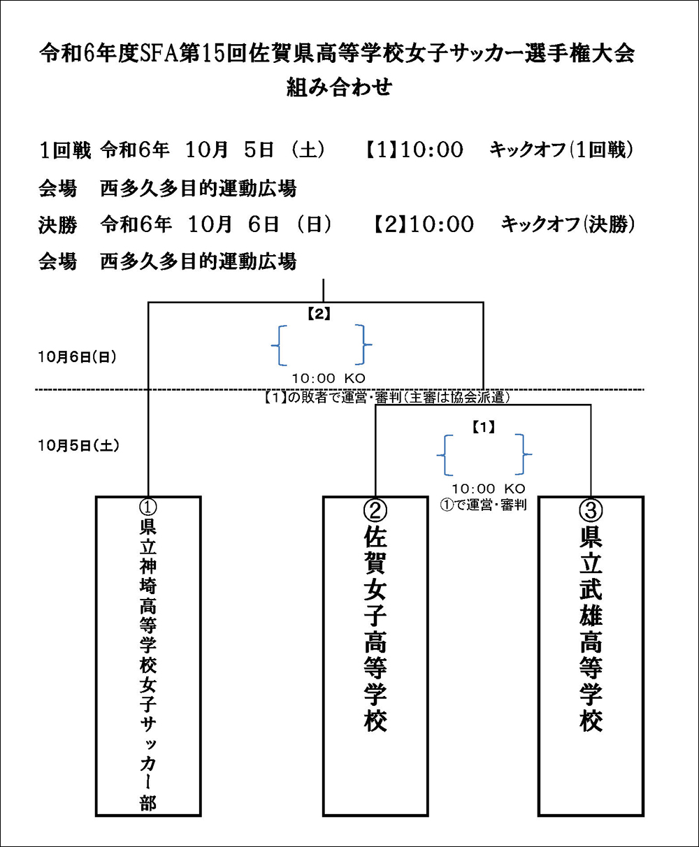2024/09/26 「令和6年度SFA第15回佐賀県高等学校女子サッカー選手権大会」組合せ