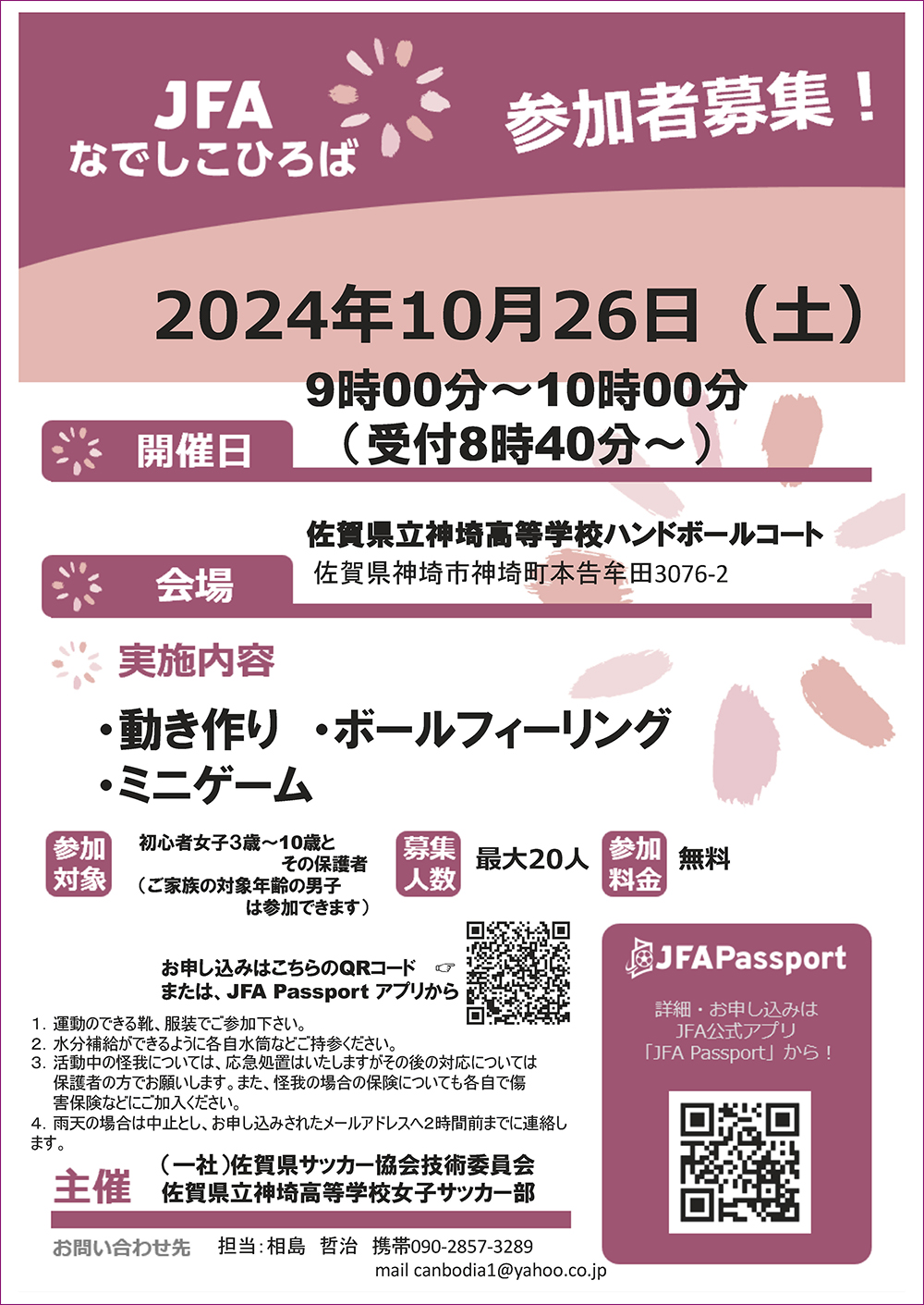 「 JFAなでしこひろば(10/26開催)」参加者募集のお知らせ